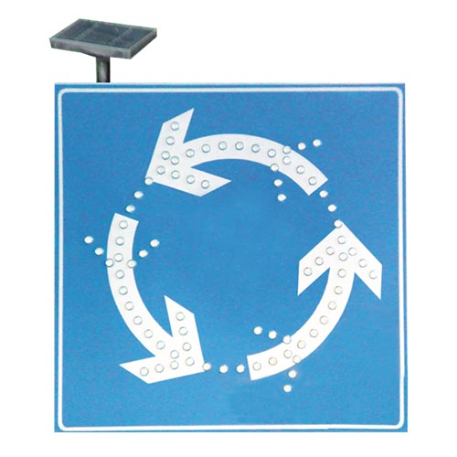 闪屏30次/分,占空比>25%;太阳能环岛标志:闪屏45次/分,占空比>30%,闪烁方式:两组三等分箭头(五连闪)变换闪烁;